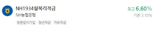 은행 이자 높은 적금 추천 - NH1934월복리적금 최고 6.60% NH농협은행