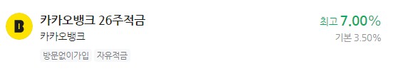 은행 이자 높은 적금 추천 - 카카오뱅크 26주적금 최고 7.00%