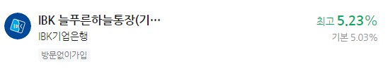 이자 높은 예금 추천 - IBK기업은행 IBK 늘푸른하늘통장(기업)[복리채] 최고 5.23%