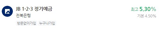 이자 높은 예금 추천 - 전북은행 JB 1·2·3 정기예금 최고 5.30%