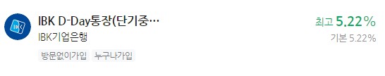 이자 높은 예금 추천 - IBK기업은행 IBK D-Day통장(단기중금채) 최고 5.23%