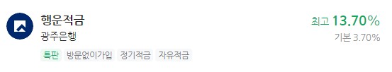 은행 이자 높은 적금 추천 - 행운적금 최고 13.70% 광주은행