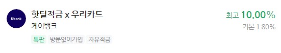 은행 이자 높은 적금 추천 - 핫딜적금 x 최고 10.00% 우리카드 케이뱅크